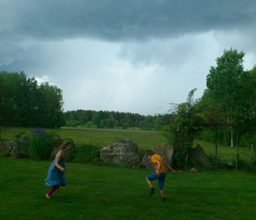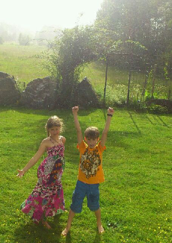 Barnen struntade i att gå in trots att det började regna. Ett varmt sommarregn kan ju vara kul ibland :)
