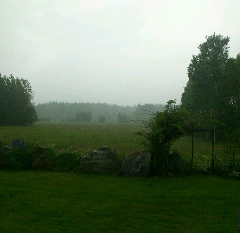 Barnen sprang runt när det började åska i fjärran. Sedan blåste molnen mot oss och det började regna och hagla. Mycket bättre att vara inne under tak i sådant väder.